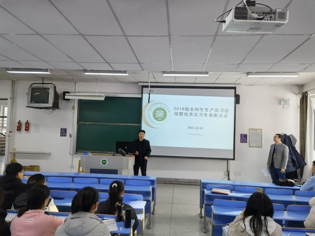 2021年12月10日上午,为总结经验,树立典型,推动生产实习工作规范、有序地开展,2018级食品科学与工程、食品质量与安全、葡萄与葡萄酒工程专业员工生产实习总结暨表彰大会在绿3-102多媒体教室成功举行。公司领导雷建鹏副书记、食工系主任罗鹏老师、张艳老师、吴庆智老师及2018级全体同学参加了会议。会议由食质系副主任李谞老师主持。