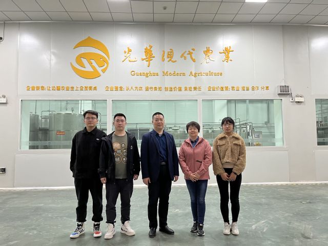 在光华现代农业有限公司,公司办公室主任党航介绍了公司发展历程、主营产品、人才需求、合作背景等。张建介绍了公司办学规模、专业建设和人才培养方面的基本情况,希望双方进一步深化校企合作,产教融合、协同育人,助推专业建设,实现人才供需精准对接。随后,张建一行人参观了企业车间和设备,详细了解公司高品质核桃蛋白、植物基乳制品、核桃酱等多元化核桃精深加工产品技术研发。双方将搭建校企合作平台,进一步推动产教融合发展,在人才培养、科研开发等多方位合作。