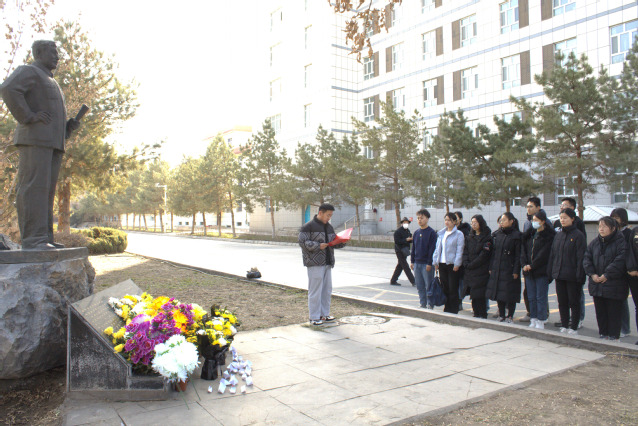 在党支部书记孙鹏程的带领下,同志们分别来到大学北区周恩来总理和张仲翰将军的雕像前怀着思念与崇敬的心情肃立默哀。默哀后,瞻仰烈士墓碑,同志们排队向英烈敬献鲜花、寄托思念,深情凭吊烈士英魂,深切缅怀他们的丰功伟绩,表达对先辈沉痛的哀悼和无尽的崇敬之情。