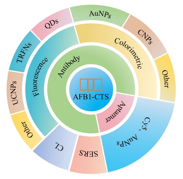 本研究中,我们综合介绍了基于抗体和基于核酸适配体的层析试纸条检测方法在AFB1检测中的应用,并主要集中在免疫层析试纸条中基于纳米材料的信号检测模式上,例如比色、荧光、化学发光和拉曼散射传感,希望能对AFB1快速检测技术的发展提供一些参考