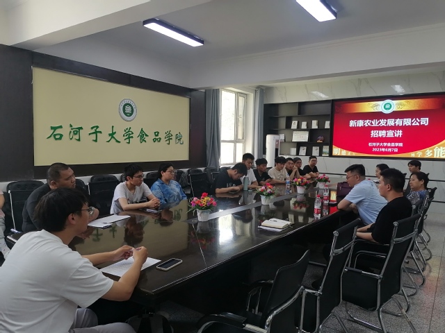 6月6日,新疆新康农业发展有限公司戚晨晨总经理一行来院交流并开展招聘宣讲,公司党委副书记雷建鹏,副经理单春会陪同参观座谈。