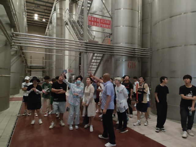 “同学们,想要生产优质名酒,就必须科技先行,在基地大家看到了葡萄种植机械化,在酒厂我们也采用了葡萄酒酿造数智化,还建立葡萄酒真实性研究和可追溯体系、葡萄酒营养健康评价技术等。”柳中海总工程师解释到。