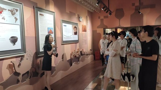 跟随郝霞讲解员的步伐,员工们了解了世界葡萄酒的历史,通过文物、遗迹的展示,仿佛回到了几千年前,亲历了葡萄酒几千年的发展演变,看到了葡萄种植葡萄酒酿造技术进步与变革。展厅最有特色的当属中国葡萄酒文化展示,展厅脚下是一条跨越西域通往西方的丝绸之路缩影,驼队载着承装葡萄酒的陶罐浩浩荡荡驶往中原。旁边长安城街头随处可见西域商人开设的酒肆,里面美酒飘香,觥筹交错之间,东西方文化交流碰撞。