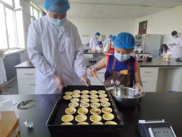 活动正式开始前,实验中心负责人为小朋友以及随行家长发放围裙、实验服和手套等用具,并向大家讲解了本次烘焙活动的具体步骤。之后,参与活动的小朋友们有序上前领取活动所需要的食材,大家纷纷开始制作饱含浓情的父亲节专属蛋挞。