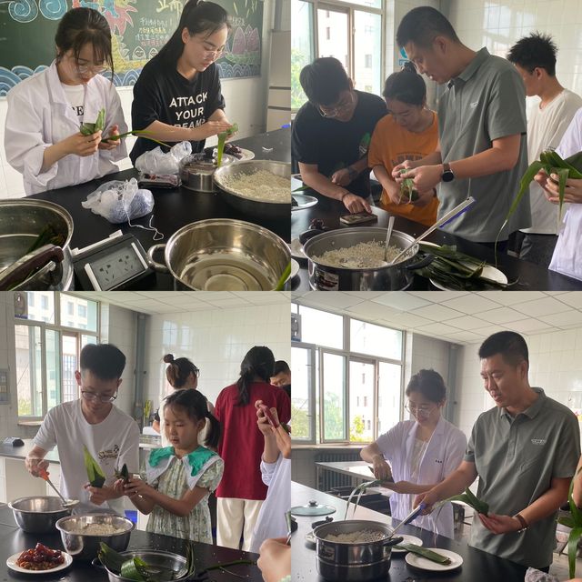 活动中,各族师生齐动手,折粽叶、填糯米、放红枣、扎线绳……你教我,我帮你,相互学习,交流包粽子的经验,在欢声笑语中,新手们渐入佳境,大家一块儿包起了粽子,热闹劲十足,各种形状的粽子很快装满了盘子,现场氛围温馨活跃,其乐融融。随后,实验室老师将师生们制作的粽子进行烹煮,并把烹饪好的美食分发给大家品尝。
