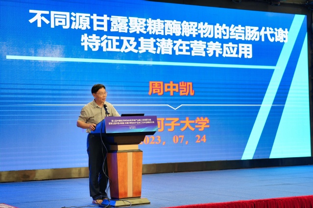 (周中凯教授作题为“不同源甘露聚糖酶解物的结肠代谢特征及其潜在营养应用”的主旨发言)