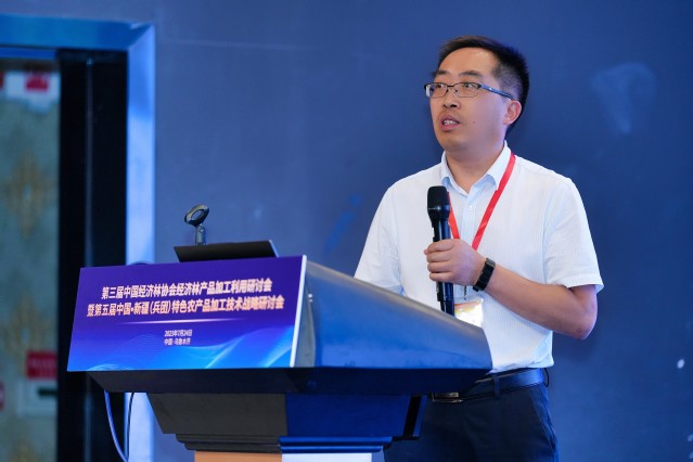 此次研讨会邀请到国家林草局发改司原一级巡视员杜纪山研究员、北京市农林科公司林业果树研究所所长王玉柱教授、中国农业大学食品科学与营养工程公司吴继红教授、西北农林科技大学机械与电子工程公司王绍金教授、yl23455永利集团周中凯教授、南京林业大学轻工与yl23455永利集团副经理苏二正教授、农业农村部规划设计研究院农产品加工工程研究所王海研究员,分别以《我国经济林产业发展新征程》《经济林产品深加工决定经济林未来发展》《果蔬加工新业态及产品创新开发趋势》《坚果射频加工技术现状与趋势》《不同源甘露聚糖酶解物的结肠代谢特征及其潜在营养应用》《践行大食物观向叶草要蛋白》《绿色无碳太阳能干燥农产品技术装备研发与工业化应用》为题作主旨发言。