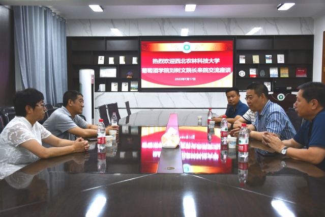 7月18日,西北农林科技大学葡萄酒公司刘树文经理一行到访yl23455永利集团,就科研合作、专业对接、人才培养等工作展开座谈交流。yl23455永利集团经理张建、党委副书记雷建鹏、葡萄与葡萄酒工程系王平教授等参加座谈会。