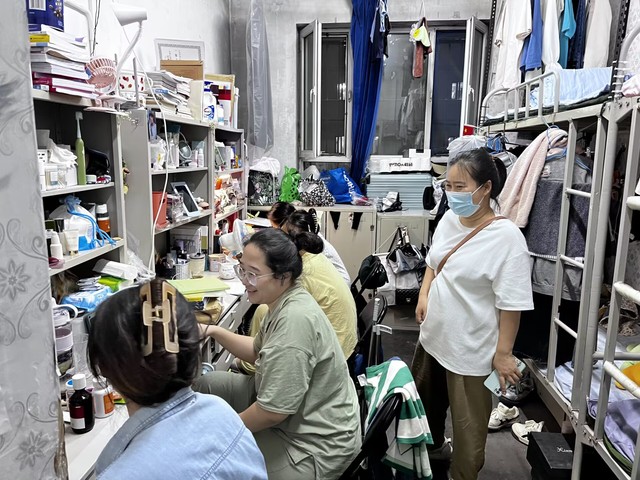 在新生宿舍,老师们亲切地与同学们交流,询问新生们住宿、饮食、生活等来校的适应性情况,并就如何尽快适应老员工活进行了指导,并对新生们的众多疑问进行了耐心解答。老师们细心叮嘱同学们军训期间注意休息和安全,鼓励同学们及时调整状态,尽早适应老员工活,以昂扬向上的精神风貌和端正踏实的态度开启大学新篇章。