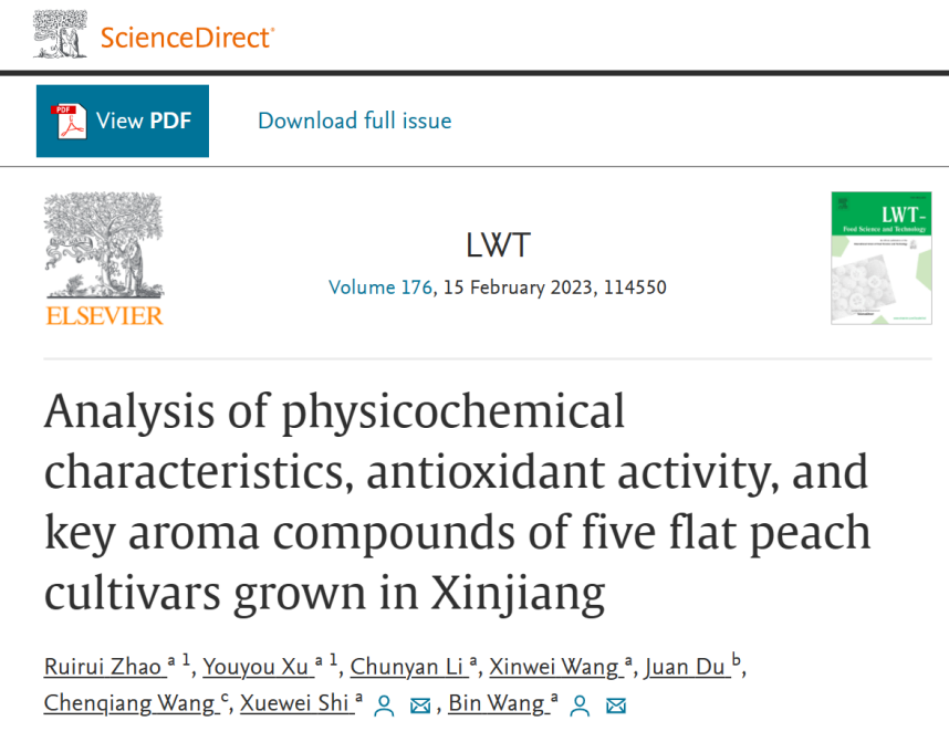 为了评价蟠桃的感官特性和营养价值,采用高效液相色谱(HPLC)和顶空固相微萃取-气相色谱-质谱联用(HS-SPME-GC-MS)对新疆五个蟠桃品种的功能成分、抗氧化能力和芳香化合物进行了测定。并基于多元数据分析和OAV分析,对蟠桃的关键香气化合物进行了鉴定。