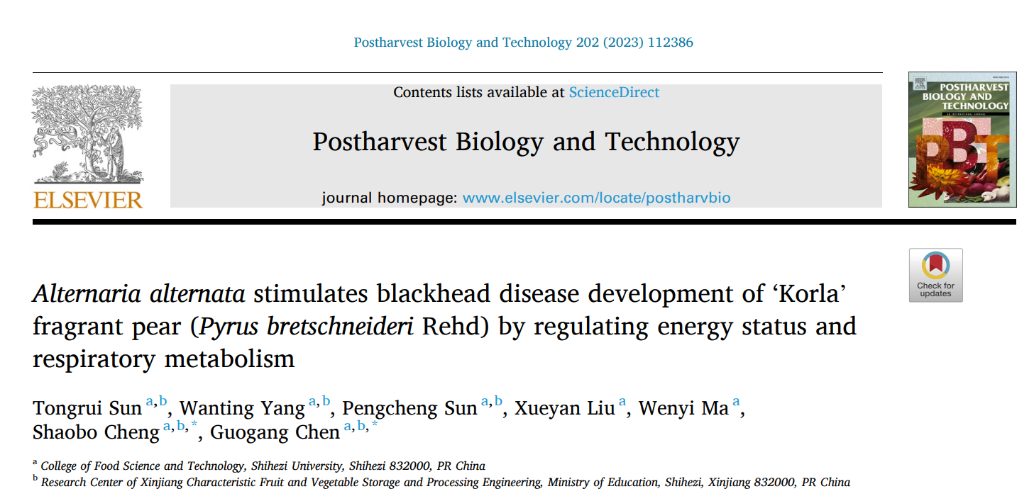 库尔勒香梨(Pyrus bretschneideri Rehd)原产于中国新疆维吾尔自治区,已有1300多年的种植历史,是中国最受欢迎的水果之一。因其香味浓郁、皮薄肉脆、味甜多汁、营养丰富,并具有通便秘,利消化、止咳等诸多药用价值,被誉为“梨中珍品”。近年来,随着库尔勒香梨种植面积增加,其外销比例也在不断增加,已远销印度、马来西亚、美国等多个国家。然而香梨果实在贮藏、运输和销售过程中易受到病原菌侵染,给果农和经销商带来严重的经济损失。Alternaria alternata(A. alternata)引起的黑头病是香梨果实贮藏过程中最具破坏性的病害之一,它不仅会造成果实组织严重腐烂,还会积累真菌毒素,是引起香梨果实品质劣变、市场价值下降以及贮藏期缩短的主要原因。因此,探索A. alternata侵染库尔勒香梨果实的致病机制对找寻控制病害发生的措施具有重要意义。