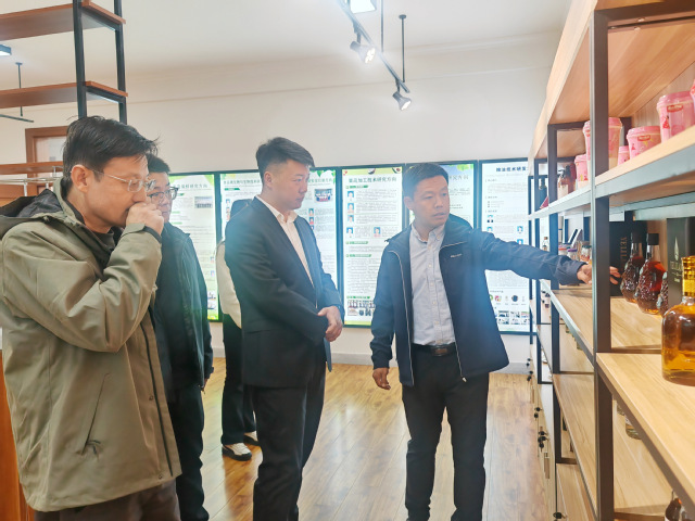 雷建鹏陪同左涛、郭晓岚一行参观了食品微生物与生物技术研究中心实验室及公司产品展览室,对中心的各个研究方向和公司产学研的成果产品进行介绍。