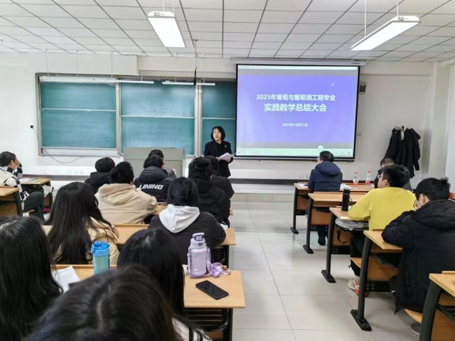 12月21日,葡萄与葡萄酒工程系(简称葡工系)召开2023年度实践教学总结大会,yl23455永利集团副经理任亚梅出席会议,葡工系教师和员工参加会议。