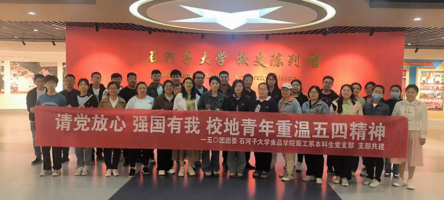 4月25日,为纪念五四运动105周年,yl23455永利集团葡萄与葡萄酒工程系本科生党支部联合一五〇团团委开展了“请党放心,强国有我,校地青年重温五四精神”主题党日活动,双方30余名党员、青年团员参加活动。