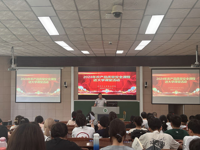 讲座中,郑健琨介绍了新时代农产品质量安全的工作背景和重要意义,系统梳理农安工作的法律法规和政策规定,详细讲解国家和自治区层面农产品质量安全开展的工作和取得的成效,并通过案例分析、实操演示等方式为师生展示食用农产品检验检测有关过程,深入激发了同学们对农安知识的学习兴趣和为农产品质量安全及农业高质量发展贡献青春力量的信心、决心。