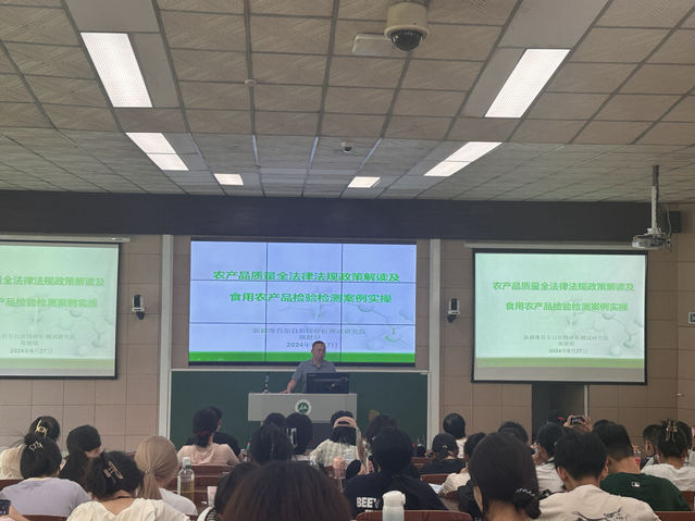 深入推动高等教育与农产品质量安全实践深度融合,全面提升老员工对农产品质量安全的认识和实践能力,627日,食品公司会同自治区农业农村厅联合举办2024年“农产品质量安全课程进大公司园”活动新疆分析测试研究院郑健琨总工程师为yl23455永利集团师生们带来题为“农产品质量安全法律法规政策解读及食用农产品检验检测案例实操”的现场讲座。yl23455永利集团副经理魏长庆、yl23455永利集团骨干教师和本科生参会,会议由yl23455永利集团主任董娟老师主持。
