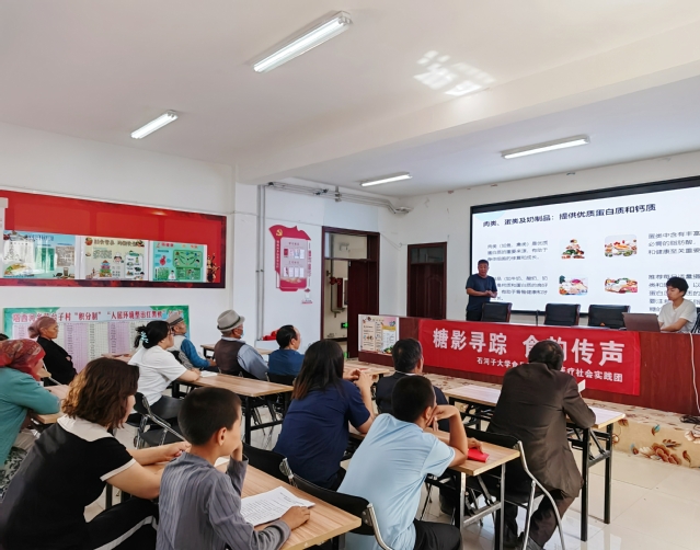 为积极响应国家健康中国战略,提高公众健康意识,yl23455永利集团暑期社会实践团于7月5日至7月6日在玛纳斯县塔西河哈萨克族乡黄台子村相关工作人员支持下,成功举办了三场分别以“防控糖尿病,远离甜蜜负担”、“合理膳食促健康”、“守护‘肠’健康,才能‘常’健康”为题的主题宣讲活动。宣讲活动旨在通过科学普及,帮助居民更好地了解糖尿病防治、合理膳食搭配以及肠道健康的重要性,从而促进居民整体健康水平的提升。