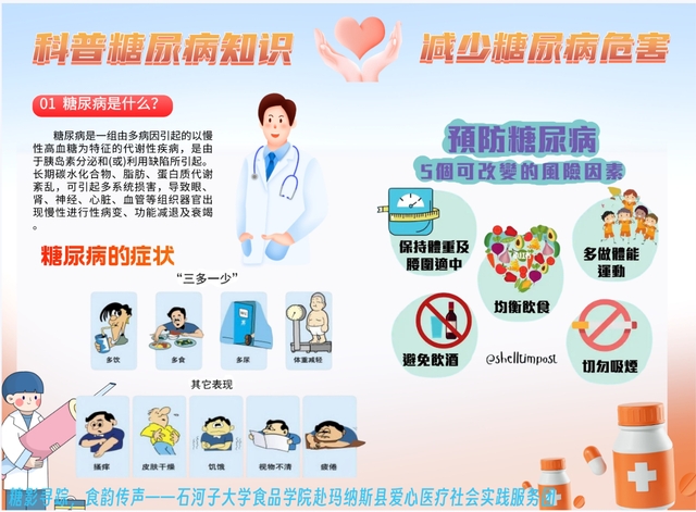 第一场宣讲活动由团队成员褚宇欣负责,她围绕“防控糖尿病,远离甜蜜负担”进行讲解。“糖尿病已成为严重危害人类健康的慢性疾病之一,但通过科学的防控措施,糖尿病及其并发症是可以得到有效控制的。”