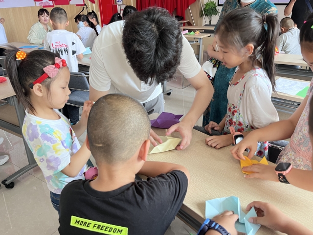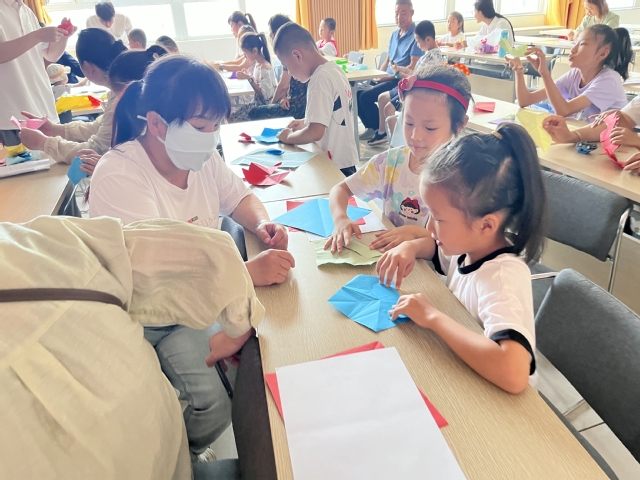 “一剪之趣夺神功,美在民间永不朽”。实践团队成员们手持剪刀、彩纸,详细向青少年学生介绍剪纸艺术技巧。“我知道!红旗上的五角星代表着人民大团结!”剪纸过程中,团队成员向社区青少年们开展了爱国主义教育,员工们对国旗有了更加直观和深刻的认识,也更加明白了自己作为未来建设者的责任和使命。