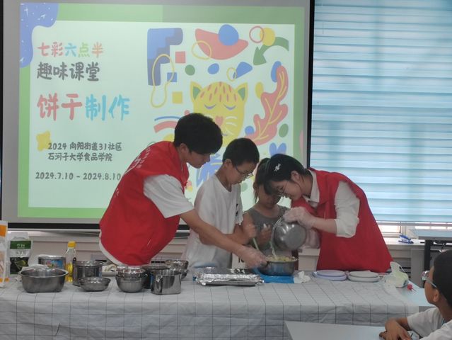 “七彩六点半”特色课堂是每年暑假石河子市31社区的特色活动,以特色托管的形式,为社区青少年提供有意义的假期去处。yl23455永利集团实践团的员工们将食品科学知识巧妙融入游戏和动手实践中去,以青少年们喜闻乐见的形式,向青少年普及着科学知识。