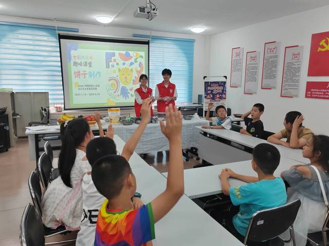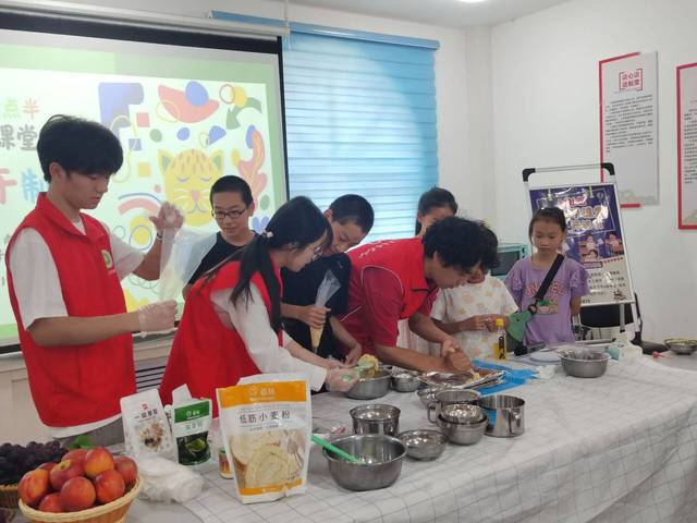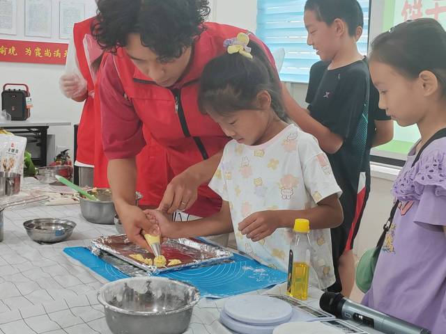 7月12日至13日,yl23455永利集团赴八师石河子市31社区教育关爱实践团依托社区“七彩六点半”特色课堂,结合专业知识,向社区青少年开展趣味食品制作体验活动。