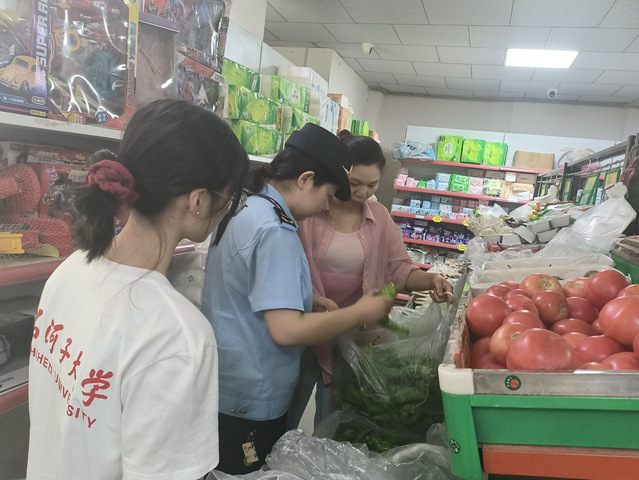 随后,食药检所所长彭玉红及各科室负责人详细介绍了食药检所在粮食、食品、药品、化妆品和医疗器械检测方面的具体职责和工作流程。彭玉红指导实践队成员参与了样品抽检和执法过程,让大家对食药检验所工作有了更直观的了解。