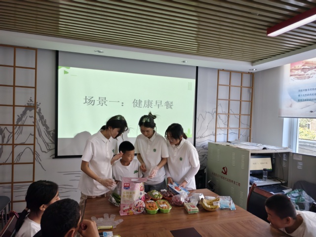 活动现场,小朋友们和实践团成员积极互动,采用知识问答、场景模拟搭配等形式一同学习食品知识,让小朋友们对膳食搭配有了更清晰认识。“我们要多吃蔬菜水果,这样才能身体棒!”一位小朋友分享着他的感悟。