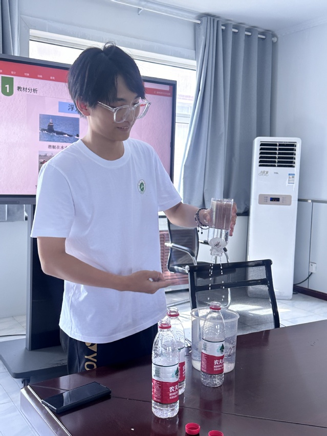 本团队成员左英熙从浮力的物理角度讲起,为社区同学们讲解了浮力的原理,左英熙又为同学们演示了“乒乓球浮力实验”,同学们热情高涨,积极参与。