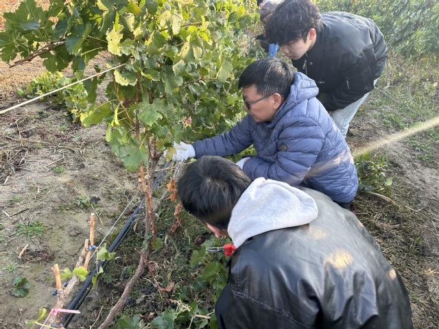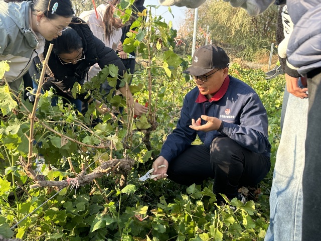 葡萄与葡萄酒工程系副主任、实习课程教师刘婧琳讲到,“该专业的年度实习计划覆盖了从春季到冬季的整个葡萄生长周期,包括出土上架、抹芽绑缚、夏剪定果、秋季采收、冬季修剪以及越冬埋土等多个环节。”“优质的葡萄酒源自高品质的葡萄,因此让员工掌握葡萄栽培管理技术至关重要。”高飞飞老师说:“通过全年的实地操作,员工们能够在本科阶段就体验到从农田到酒瓶的全过程,这将极大促进他们未来理论知识的学习。”