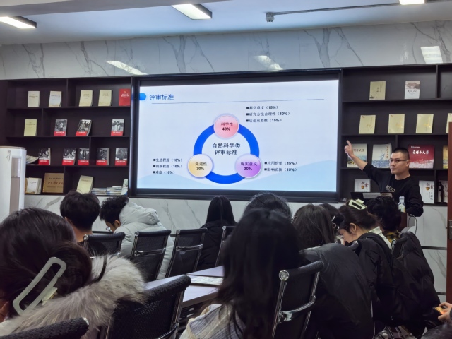 王安东老师从“挑战杯”竞赛简介、作品分类、参赛准备及注意事项、获奖作品展示四个方面进行了详细的解读和分享。结合公司教师的主要研究方向以及共青团中央的最新文件介绍,对团队的组建等方面给出了建议,解决了公司师生在竞赛规则、流程方面的疑惑,同时为公司师生在作品选题方面打开新的思路。