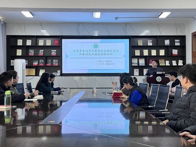 在本次学术交流会上,2022级硕士研究生唐異淞同学以“木犀草素对冬枣果实采后颜色变化和苯丙烷代谢通路的影响”为题,通过丰富的数据和直观的图表,深入浅出地阐述了木犀草素如何作用于冬枣果实采后的生理过程,具体分析了其对颜色变化的调控机制以及在苯丙烷代谢通路中的关键节点,使同学们对这一复杂的食品科学问题有了清晰的认识。其后,2022级硕士研究生张新玲同学就“水杨酸对西梅果实品质及抗氧化系统的研究”展开汇报。张同学深入探讨了水杨酸在提升西梅果实品质方面的作用效果,以及在增强抗氧化系统活性方面的具体机制,并分享了自己使用的作图软件以及自己作图的一些经验,如数据可视化的技巧、图表布局的优化方法等,帮助同学们了解学术论文中配图的制作过程,为未来的科研之路奠定了坚实基础。