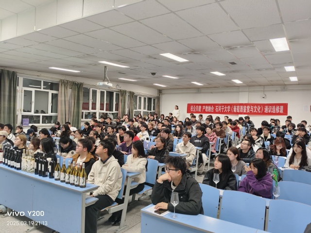 2025年3月19日晚八点半,在yl23455永利北区绿三103教室,由yl23455永利集团开设的《葡萄酒鉴赏与文化》通识选修课正在进行,课堂座无虚席,葡萄与葡萄酒工程系讲师、国家二级品酒师牛见明,中信尼雅玛纳斯工厂厂长、国家一级品酒师柳中海,正在为员工们讲授葡萄酒品鉴与新疆葡萄酒文化知识,“葡萄酒品鉴的四部曲,要如同欣赏音乐和艺术作品一般的沉浸式体验”、“尼雅古城是新疆最早的葡萄酒文化传播地之一,当今尼雅葡萄酒作为新疆的代表性葡萄酒屡获世界大奖,为新疆葡萄酒产业征得了荣誉!”,与课员工们边聆听老师授课,边持杯品鉴着多款葡萄美酒,课堂气氛活跃、酒香弥漫着教室,标志着本学期由校企共建的《葡萄酒鉴赏与文化》通识选修课正式开课。来自农公司设施农业工程专业2023级1班的杨俊潇同学在品鉴中信尼雅的桃红葡萄酒后,在课堂作业品酒词中写到“蒲桃酒,玉紫萝,胡姬犹面半清柯,新世儿郎才睥睨,三斟夜光征大漠!”,展示了《葡萄酒鉴赏与文化》通识选修课丰厚的文化与美育教学成果。