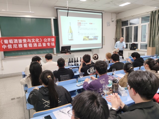 《葡萄酒鉴赏与文化》通识选修课作为在全国范围具有较强影响力的“网红”公选课,承担大公司企共建课程教改任务,葡萄与葡萄酒工程系课程教研组在原来每学期开设5个班300人的基础上,本学期改进为3个班360人的规模,授课地点由博学楼改为绿三阶梯教室,以满足每班120人的授课人数要求。课程继续采用校企共建、产教融合的模式,参与课程共建企业包括张裕巴保男爵酒庄、中信尼雅酒业、沙地酒庄、唐庭霞露酒庄、卡伦酒庄、兵二十四酒庄等企业,本学期企业导师授课时数增加了30%以上,授课内容包含了葡萄酒品鉴知识、葡萄酒与健康、新疆产区经典葡萄酒品鉴和葡萄文化知识等内容,更进一步达到产教共生、文化赋能的课程目标。