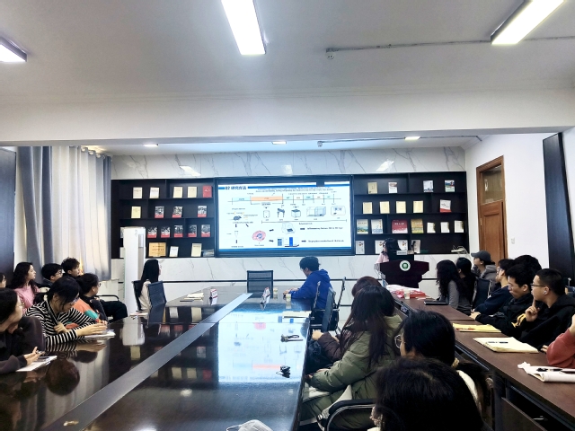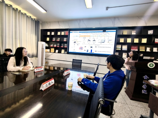 交流会上,2022级研究生邵立恒以黑桑果醋发酵过程中风味和代谢物变化的研究为题,讲解了桑葚醋发酵过程中品质的变化及加工工艺,使在场同学对这一食品科学问题有了更清晰的认识。随后,2022级研究生罗燕琴围绕慢性不可预测温和应激致焦虑模型的建立与评价展开汇报,详细介绍了小鼠温和应激致焦虑模型的建立过程,拓宽了同学们对动物实验的认知,激发了大家对相关研究的兴趣。