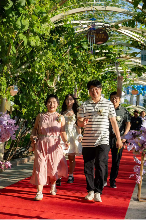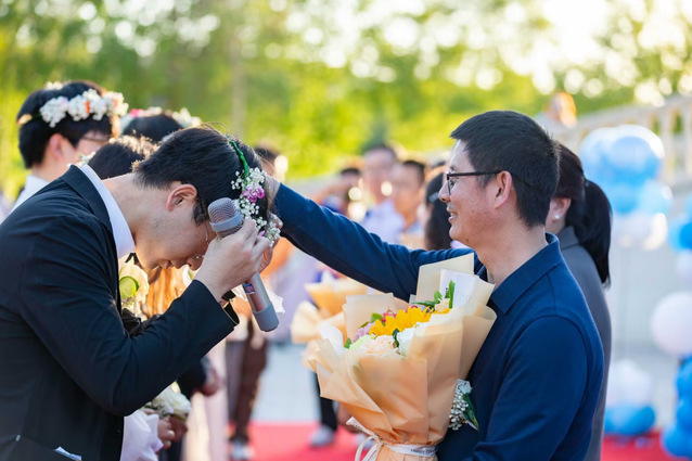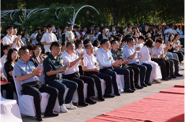 典礼上,最动人的时刻莫过于毕业生代表为教师献花,而教师们则回赠花环。这一刻,师生之间的情谊在花香中弥漫,字字珍重、句句恳切。毕业生和老师们一同回望进校以来生活、学习、工作的点滴,无论是宿舍里无微不至的关怀,还是员工工作中默契的合作,都在师生心中留下了最温暖的一角。这些珍贵的回忆,将成为他们心中永远的宝藏。