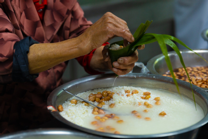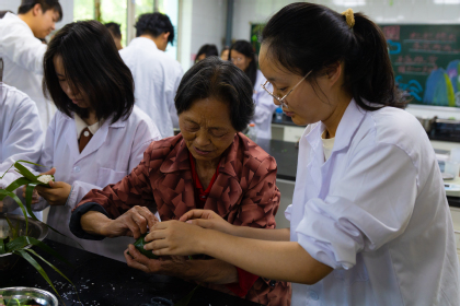 实践环节成为全场焦点。在当地社区粽子技艺传承人王汝琴老奶奶的悉心指导下,师生们亲手体验了选叶、泡米、填馅、捆扎等传统工序。公司准备了丰富的馅料与粽叶,鼓励大家发挥创意,制作个性化粽子。活动现场还穿插了端午知识趣味问答与香囊制作体验,让艾草驱邪、五彩绳祈福等习俗知识在互动中深入人心,妙趣横生。