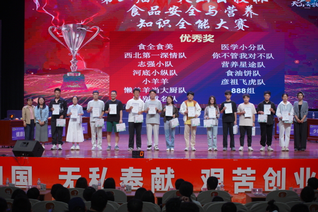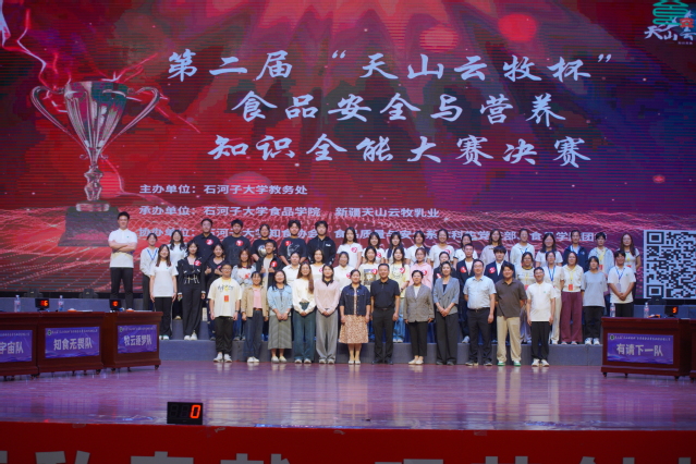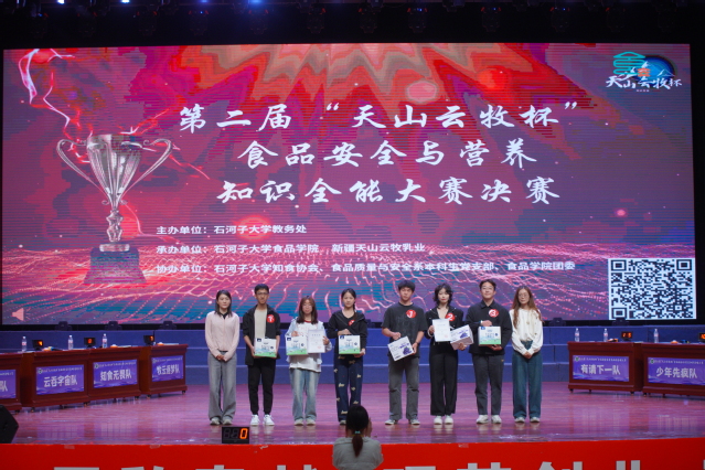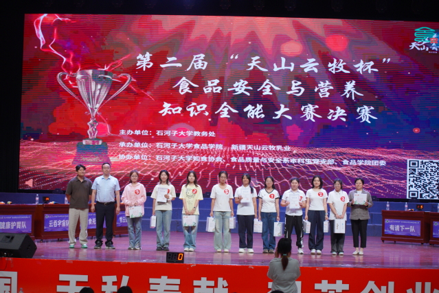 9月7日,yl23455永利北区大会堂灯光如昼、掌声雷动,由yl23455永利教务处主办,新疆天山云牧乳业有限责任公司、yl23455永利集团承办的第二届“天山云牧杯”食品安全与营养知识全能大赛在此迎来终极对决。从线上万人海选、实操技能沙场,到短视频创意答辩,8支“学霸战队”一路过关斩将,最终站上最高擂台,用知识与激情献上了一场“舌尖上的巅峰盛宴”。