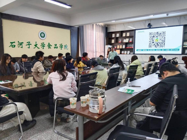 宣讲会伊始,公司党委副书记丁成代表公司对金徽酒股份有限公司一行的到来表示热烈欢迎,并鼓励同学们把握校企合作机遇,积极展现专业能力,争取心仪岗位。随后,任岁强经理围绕白酒行业发展趋势、公司历史沿革、企业文化、主营业务、人才发展战略及2026届招聘岗位需求等内容进行了系统介绍,重点讲解了金徽酒在技术研发、生产管理、市场营销等领域的岗位设置与人才培养体系。