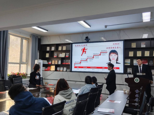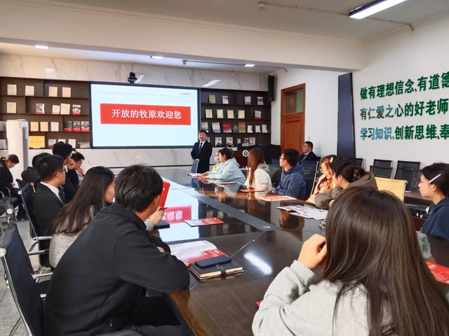 宣讲会上,牧原股份的招聘负责人王赠博通过生动的讲述和丰富的影像资料,系统介绍了公司的发展历程、企业文化、战略布局、技术创新成果以及未来的发展前景。他特别强调,牧原股份高度重视人才的引进与培养,为应届毕业生设计了涵盖技术、管理、营销等多方向的“星辰计划”等专项培养项目,提供了清晰的职业发展通道和具有竞争力的薪酬福利体系,充分展现了公司对青年人才的渴求与尊重。