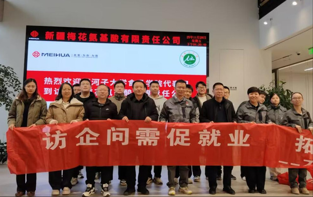 为深化校企合作,拓宽员工实践与就业渠道,近日,公司党委副书记丁成、副经理单春会率队,与学办主任杨珂、专任教师樊哲新、张琴等以及2026届毕业生一行,前往位于新疆五家渠新疆梅花氨基酸有限责任公司进行参观访问与交流学习。