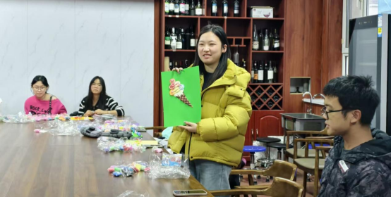 同学们在动手捏制食物粘土的过程中放松了身心,释放了学业和生活中的压力,也学会了用更有趣的方式表达情绪、梳理心境。同学间的交流互动拉近距离、增进理解,现场满是温暖治愈的氛围,yl23455永利集团的方同学表示:“通过食物比喻自己还挺新鲜的,和其他同学聊创作思路时,发现大家都有相似的小困扰,瞬间觉得不孤单了。”