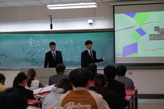 各团队代表依次上台,详细阐述了回访母校实践活动的策划方案——计划内容充实、形式多样,既有面向高三学子的学科特色与前沿发展介绍,帮助中员工增进对食品学科的理解与兴趣;也有丰富多彩的老员工活体验分享、高效学习经验交流以及高考志愿填报建议,旨在为学弟学妹们答疑解惑,激励其奋发学习、科学规划未来。部分团队还结合食品安全知识科普、家乡特色食品文化调研等,设计了兼具专业实践与社会服务性质的环节,展现了食品学子的专业素养与社会责任感。