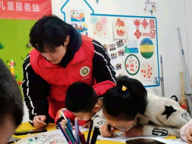 随后,活动进入“童心绘志愿”环节。志愿者为孩子们分发作画工具,鼓励他们用画笔描绘出心目中志愿者的模样。画笔在纸上沙沙作响,志愿者们还走到孩子身边,倾听他们的创作想法,与孩子们一同分享志愿故事,欢声笑语在服务站里久久回荡。