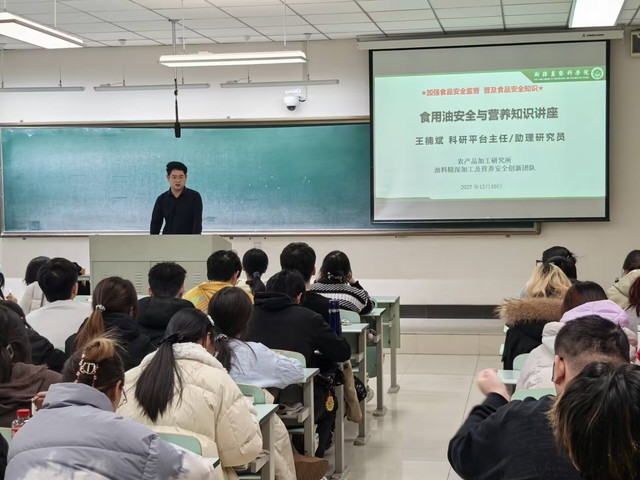 为深化产教融合,助力员工贯通理论与实务,12月10日,新疆农垦科公司王楠斌副研究员受邀走进《食品质量管理与控制》课堂,围绕“食用油的安全与营养”主题,为同学们带来了一场干货满满、贴近行业的专业讲座。